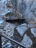 Nel glaciale pomeriggio del 3 gennaio mi sono avventurato da solo alla scoperta di un luogo a me molto caro e di cui conosco molte sfumature visto la frequentazione costante e lunga nel tempo di almeno 40 anni. Poca gente per fortuna e il solito alito gelido di vento che scende lungo la gola e ti colpisce come una pugnalata. Sin dai primi passi, la sensazione è che qualcosa nuovo sia successo: si cammina molto in alto rispetto al livello del torrente! Dal vivo è veramente impressionante la differenza rispetto al passato. Più si prosegue verso la Chiesetta più si vedono evidenti i segni della nuova impostazione progettuale: si passa a qualche metro dalla Madonnina. Ricordo che quando ero piccolino mi sembrava così lontana e soprattutto così alta…